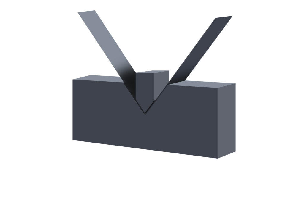 Air bending, or free bending, is a flexible method where the sheet does not fully contact the die. The punch applies pressure without reaching the bottom of the V-die, leaving an air gap.