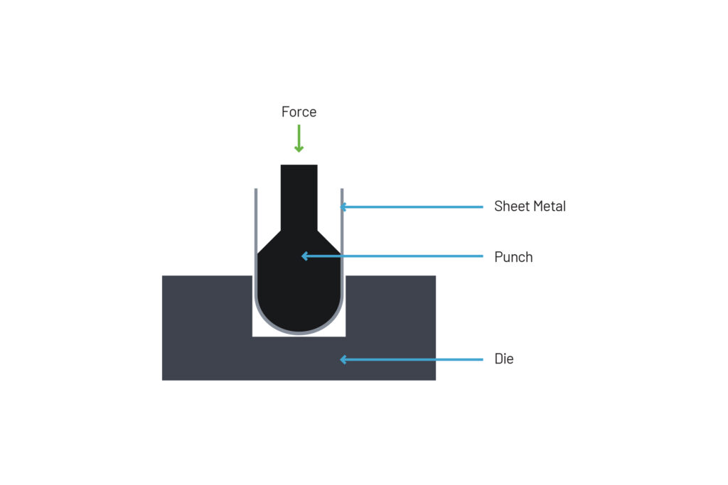 Coining uses extreme force to plastically deform the material through its thickness, locking in the bend angle. The term Coining comes from the idea that when it comes to money each metal coin is made exactly the same as the last despite being mass produced.