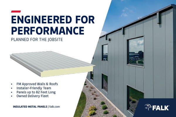 | BUILT DIFFERENT: INSULATED METAL PANELS MADE FOR INSTALLERS At FALK, our insulated metal panels are engineered with installers in mind. From panels stretching up to 82 feet, to our in-house trim shop, owned delivery fleet, and installer-friendly processes, we simplify every step of your build. Visit us at Booth #3026 to see how FALK panels can make your next project faster, smarter, and more efficient. LEARN MORE→ |